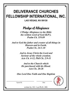 DUE TO THE INCREASED INTEREST AND REQUEST TO BE AFFILIATED WITH DCFII OF THE MANY APOSTLES,BISHOPS, ELDERS, EVANGELIST, MISSIONS CHURCHES ORPHANAGES,FEEDING PROGRAMS, ETC. IN THE BEST INTEREST OF DCFII PERSONS,MINISTERS MISSIONS ETC WHO HAVE NOT DISPLAYED OUR PLEDGE OF ALLEGIANCE SIGNED AND DATED IN THEIR PLACES OF WORK,WORSHIP,MINISTRY,MISSION AND CANNOT SHOW THE GOLD STANDARD SHOULD BE DEEMED NOT AFFILIATED WITH DCFII,USA. IN THE SPIRIT OF TRUTHFULNESS AND BELIEF STANDARDS FOR ALL OF OUR ADHERENTS WHO WOULD SUPPORT,ATTACH THEMSELVES TO UNKNOWN MINISTRIES, AND OUR INABILITY TO VETT ALL OF THEM IN A TIMELY MANNER.WE HUMBLY REQUEST THAT ANY QUESTIONS REGARDING OUR WORLDWIDE MINISTRIES BE DIRECTED TO THE GENERAL SECRETARY FOR MORE INFORMATION pastorstansberry@gmail.com